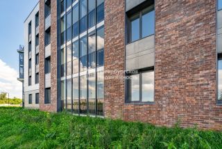 Архитектура комплекса гармонично вписана в зеленый ландшафт. Фасады выполнены из керамогранита природных оттенков и кирпича.