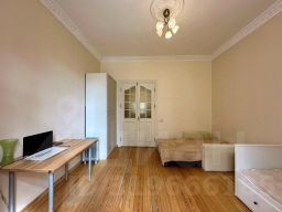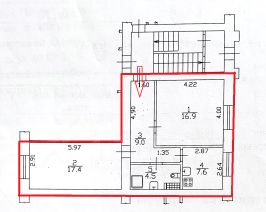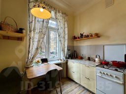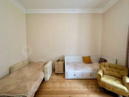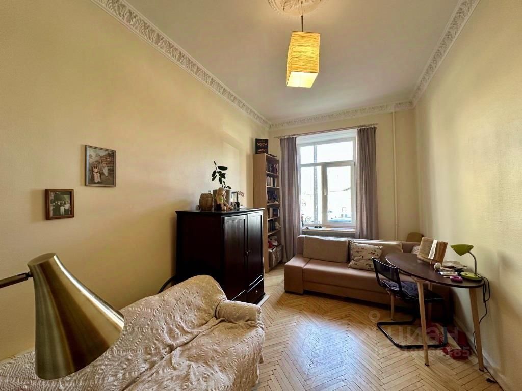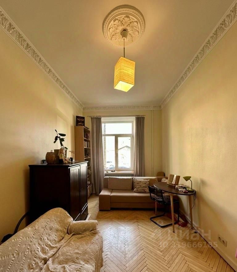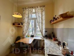 Квартира двухсторонняя общей площадью 55,4 м2, с изолированными комнатами 17,4 м2 + 16,9 м2, санузел совмещенный с открытой душевой. Окна комнаты и кухни выходят в зеленый двор, одно окно на Кирочную.