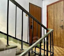 Расположена на весьма высоком первом этаже, высота от уровня тротуара до окна 2,20 м, даже рукой практически не достать. Две квартиры на этаже.