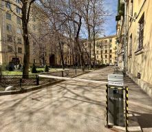 Вход в наш подъезд оборудован пандусом, с зеленого ухоженного двора, въезд в который оборудован шлагбаумом. Сквозной выход в Сквер Финансистов, который был благоустроен и обновлен в 2024 году. Теперь это фешенебельное прогулочное пространство с пешеходными дорожками, удобными скамейками и современным освещением, красоту которому в теплый период придают гортензии, парковые розы, кустарники и необычное для городских скверов дерево груша.