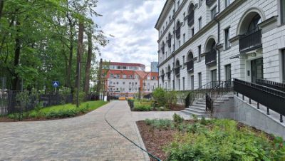 Из преимуществ дома - всего 97 квартир, всего 6 этажей - последний этаж мансардный. Архитектурный стиль - Неоклассика ХХ-го столетия.