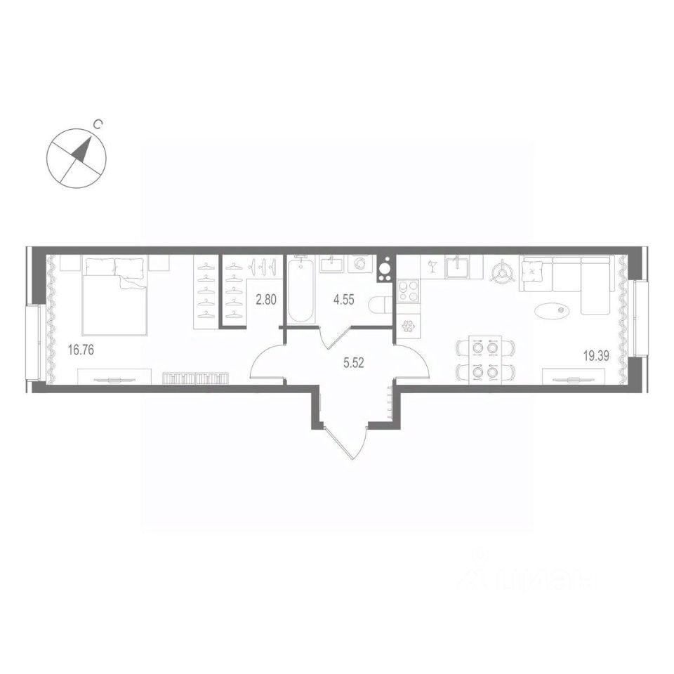 Жилая площадь16,8 м²