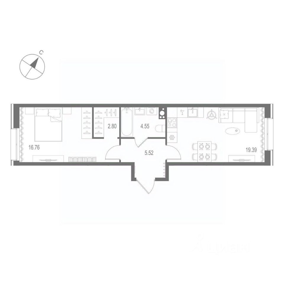 Жилая площадь16,8 м²