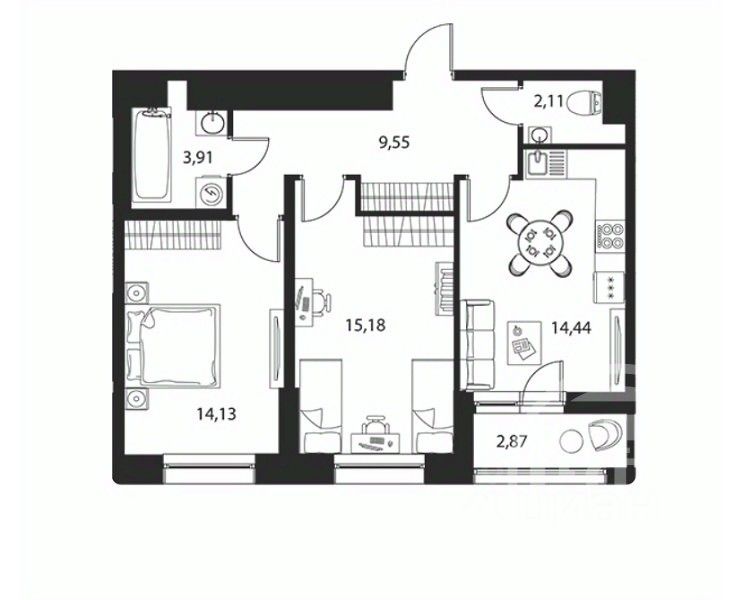 Продам просторную 2- комнатную квартиру с большой кухней- гостиной и лоджией в ЖК Аквилон Leaves.