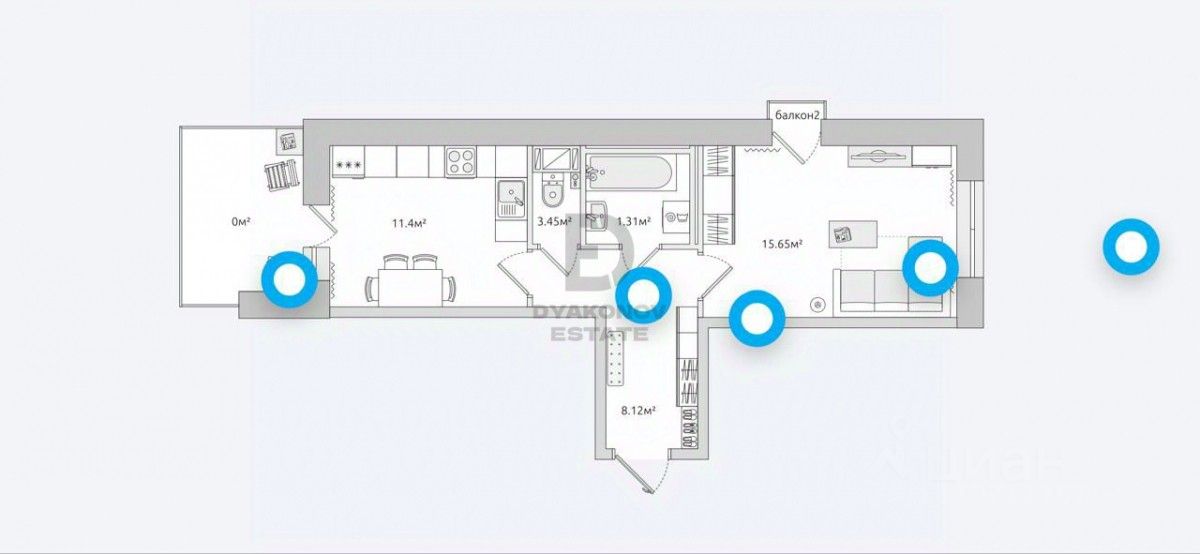 - просторная кухня-гостиная 11,4 м2 с выходом на лоджию 8м2 с панорамным остеклением;