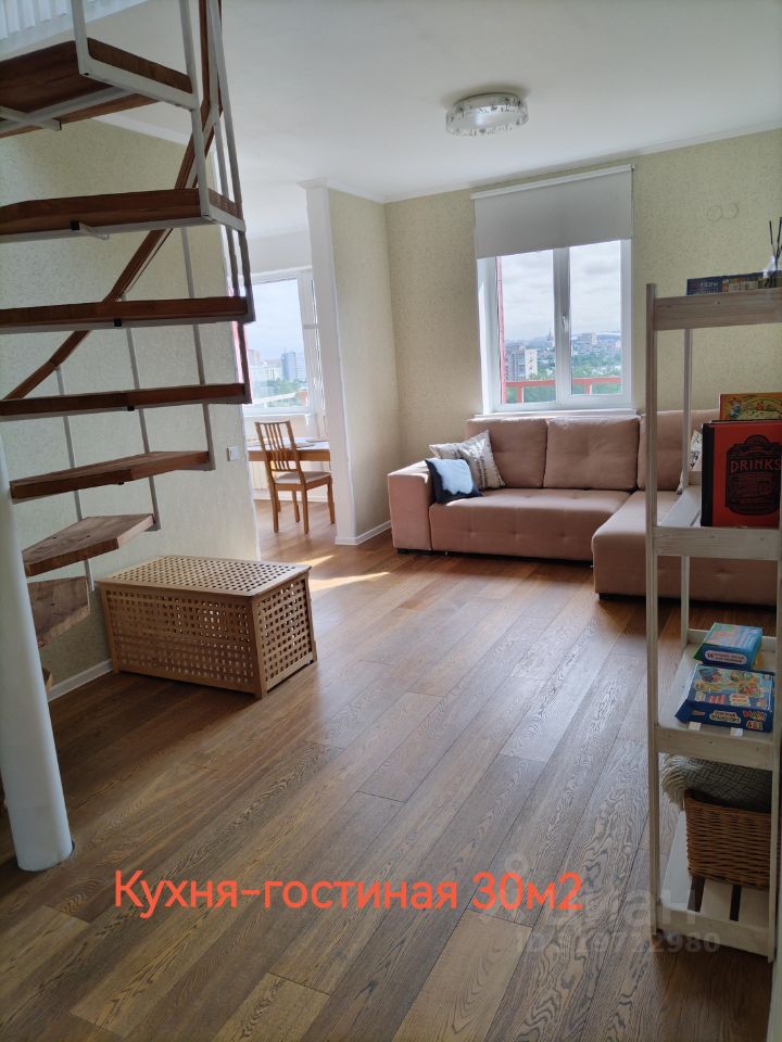 ДВУХУРОВНЕВАЯ 4-комнатная квартира (гостиная совмещена с кухней), в которой много воздуха и света, т.к. расположена на последних полноценных 15 и 16 этажах и во всех окнах - небо, а не глаза соседей :). Наверху под самой крышей дома есть терраса 13 кв. м , до которой не дошли руки, но при обустройстве там зоны отдыха с гирляндами романтики точно оценят. Еще два балкона по 6.5 кв.м расположены внизу с выходом из кухни и спальни. С одного хорошо видно праздничные салюты! Все окна квартиры выходят на две стороны двора: юг и восток. Ремонт обычный косметический, полы в комнатах нижнего этажа и на кухне из паркетной доски. На каждом этаже своя гардеробная и свой санузел: на нижнем совмещенный, на верхнем раздельный. Из особенностей: на верхнем этаже две небольшие комнаты 7 и 9 кв. м, их можно объединить в одну, т.к. стена между ними не несущая, но у нас наверху жили два школьника, каждый предпочитал иметь свое маленькое государство в государстве :) В квартире очень толстые стены, поэтому дома всегда тепло и хорошая шумоизоляция от соседей. Соседи на площадке все приличные и спокойные люди, в подъезде всегда тихо и чисто, есть консъерж. В доме свое, очень отзывчивое и эффективное ТСЖ. В самом доме располагаются Озон и Вайлдберриз, в соседнем доме Пятерочка, во дворах два молодежно-подростковых клуба с разными кружками и спортивными секциями . У нас очень зеленые дворы и в пешей доступности два парка: 10 минут до парка Авиаторов с новыми обустроенными зонами отдыха, спортивными и игровыми площадками, 20 минут до Парка Победы с его катком и теннисным кортом, лодками и парком аттракционов. Расположение дома очень удачное: 20 минут до м Московская и музыкальных фонтанов, 20 минут до публичной библиотеки, 25 минут до СКА арены и России. До платформы Ленинский проспект 15 минут пешком. Недалеко от дома заезд на ЗСД и ШМСД ( в будущем ВСД), быстро и без пробок можно добраться в любую точку города и выехать загород. Во дворе у нас небольшая площадка, в соседних дворах кроме игровых площадок есть каток. В целом, квартира простенькая, но совершенно неповторимая своей планировкой и расположением! По нашему 10-летнему опыту очень подходит семье с детьми школьного возраста.