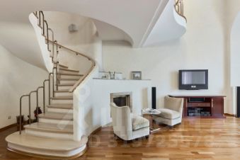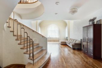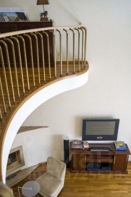 - просторная планировка в двух уровнях, украшающим акцентом в квартире является роскошная дубовая лестница с латунными балясинами, соединяющая этажи:
