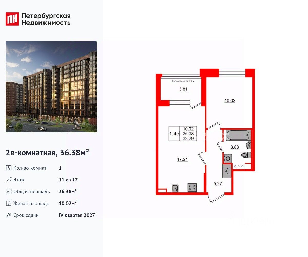 Удобная, классическая, функциональная европланировка, большая кухня-гостиная 17.21 м², просторная прихожая 5.27 м². Общая площадь квартиры - 36.38 м², жилая 10.02 м², высота потолка 2.75 м.
