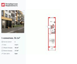 Продается просторная 1-комнатная квартира от застройщика в жилом комплексе "Univer City" в на юге Санкт-Петербурга.