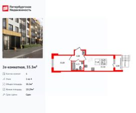 Продается просторная 1-комнатная квартира от застройщика в жилом комплексе "Univer City" в на юге Санкт-Петербурга.
