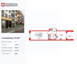 Продается просторная 1-комнатная квартира от застройщика в жилом комплексе "Univer City" в на юге Санкт-Петербурга.