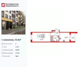 Продается просторная 1-комнатная квартира от застройщика в жилом комплексе "Univer City" в на юге Санкт-Петербурга.