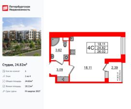 Продается просторная студия от застройщика в жилом комплексе "Univer City" в на юге Санкт-Петербурга.