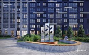 • Места притяжения: фонтан "Бионика", спортивный кластер со скейт-парком, фотозоны с арт-объектами