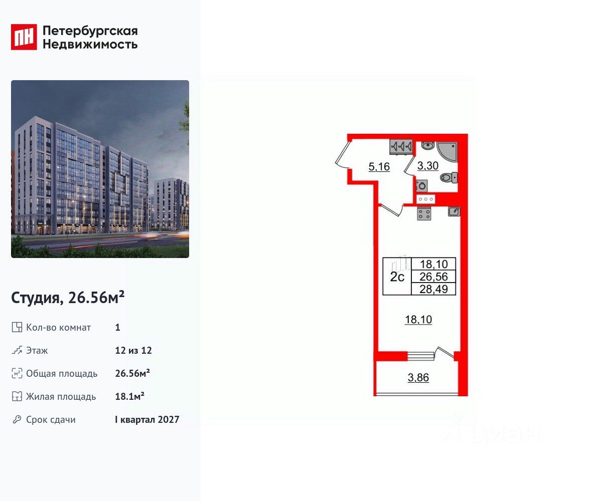 Продается просторная студия от застройщика в жилом комплексе "Бионика Заповедная" в динамичном Приморском районе.