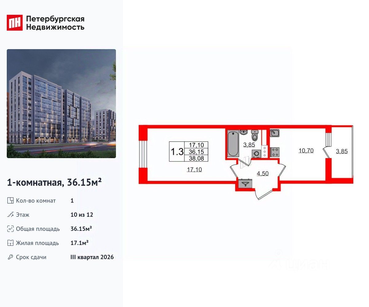 Продается просторная 1-комнатная квартира от застройщика в жилом комплексе "Бионика Заповедная" в динамичном Приморском районе.
