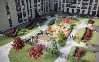 • 5 единых входных групп с авторским дизайном и лаундж-зонами, сити-виллы на первых этажах с палисадниками и высотой потолков до 4 м