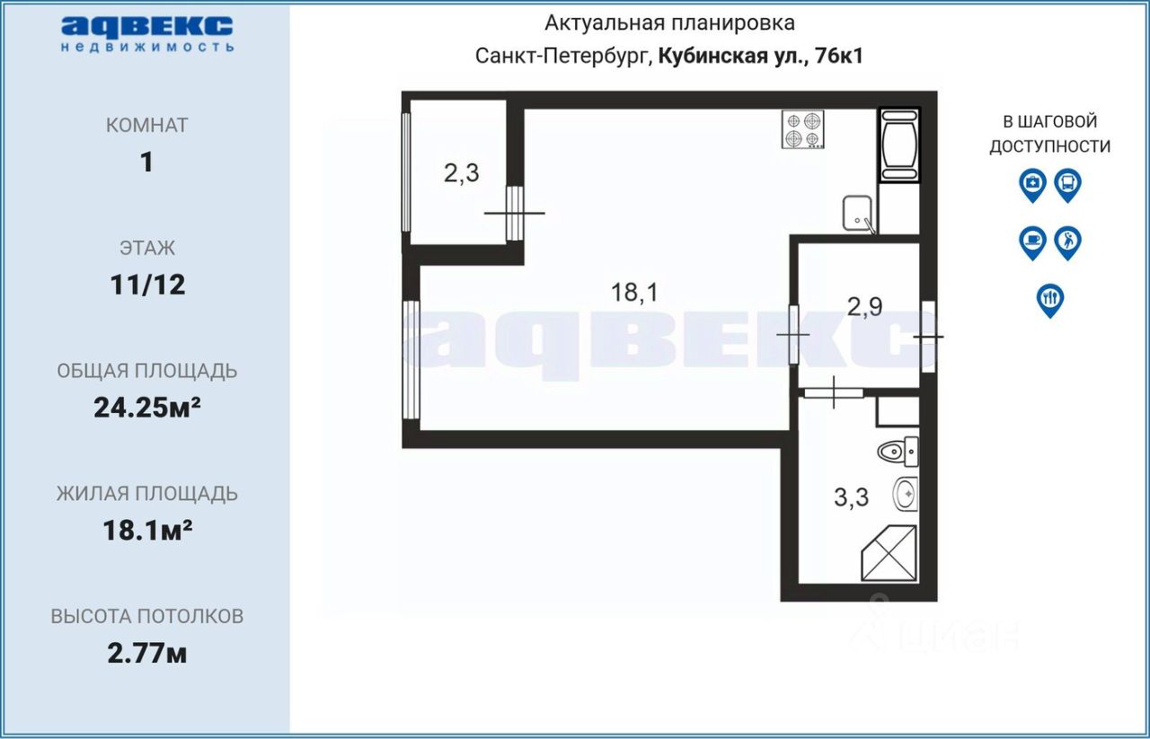 Квартира в ЖК "Сенат" ул. Кубинская корпус 1.1 секция 1.1.