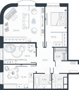 Продаётся 3-комнатная квартира в строящемся доме (Корпус 1), срок сдачи: III-кв. 2026, общей площадью 86.68 кв.м., на 6 этаже. Новый жилой комплекс "MONODOM ART" от застройщика "ГК Sun Development" расположен по адресу: Россия, Санкт-Петербург, Гаванская улица