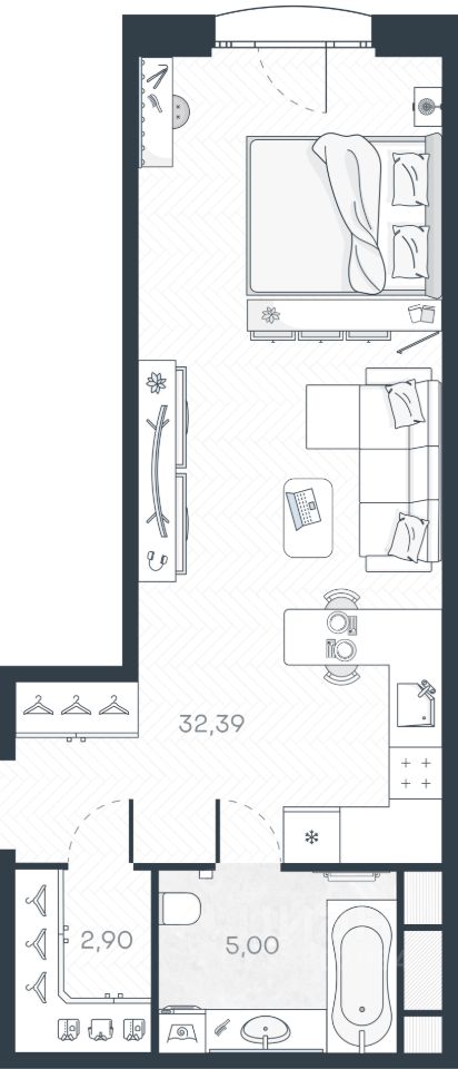 Продаётся 1-комнатная квартира в строящемся доме (Корпус 1), срок сдачи: III-кв. 2026, общей площадью 40.83 кв.м., на 2 этаже. Новый жилой комплекс "MONODOM ART" от застройщика "ГК Sun Development" расположен по адресу: Россия, Санкт-Петербург, Гаванская улица