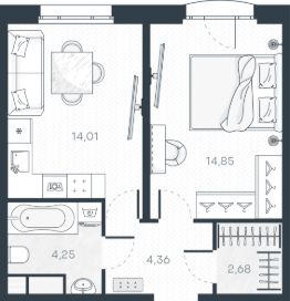 Продаётся 1-комнатная квартира в строящемся доме (Корпус 1), срок сдачи: III-кв. 2026, общей площадью 40.75 кв.м., на 3 этаже. Новый жилой комплекс "MONODOM ART" от застройщика "ГК Sun Development" расположен по адресу: Россия, Санкт-Петербург, Гаванская улица