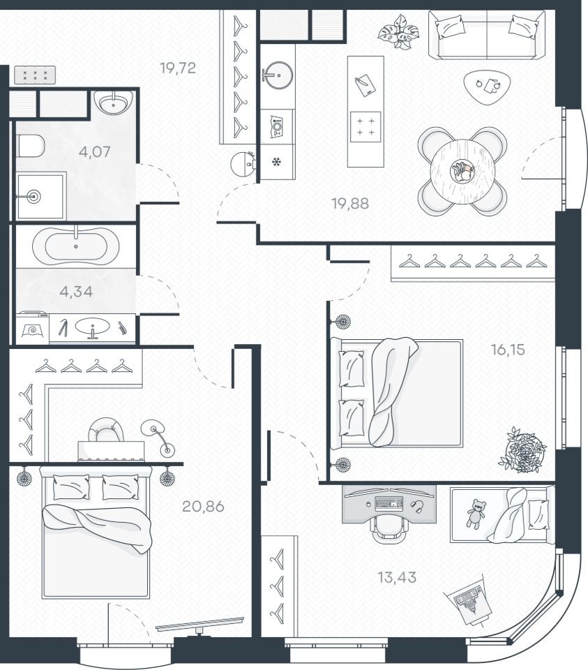 Продаётся 3-комнатная квартира в строящемся доме (Корпус 1), срок сдачи: III-кв. 2026, общей площадью 99.65 кв.м., на 3 этаже. Новый жилой комплекс "MONODOM ART" от застройщика "ГК Sun Development" расположен по адресу: Россия, Санкт-Петербург, Гаванская улица