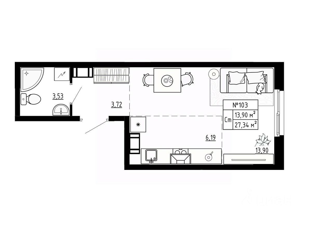 Общая площадь27,34 м²