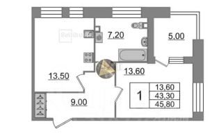 Квартира находится на 2 / 10 этаже. Общая площадь квартиры 43,3 м2. Просторная кухня 13 м2. Уютная спальня 13 м2. Лоджия 5 м2. Санузел 7.2 м2
