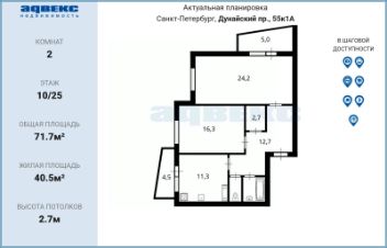 - Общая площадь по выписке из ЕГРН - 71.7 м2.