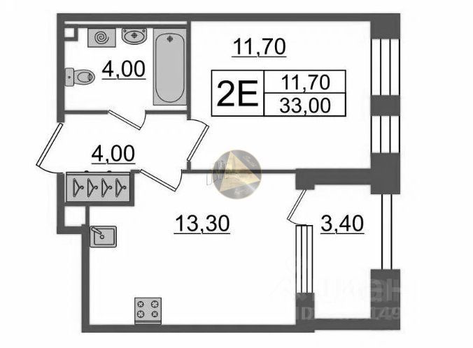 О квартире: - Квартира находится на 2 этаже 10-и этажного дома - Общая площадь квартиры 33 м2 - Уютная спальня 11,7 м2 - Кухня 13,3 м2 - Балкон 3,4 м2 - Совмещенный санузел 4 м2