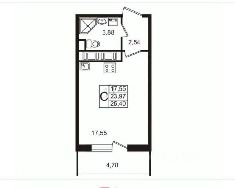 Общая площадь23,97 м²