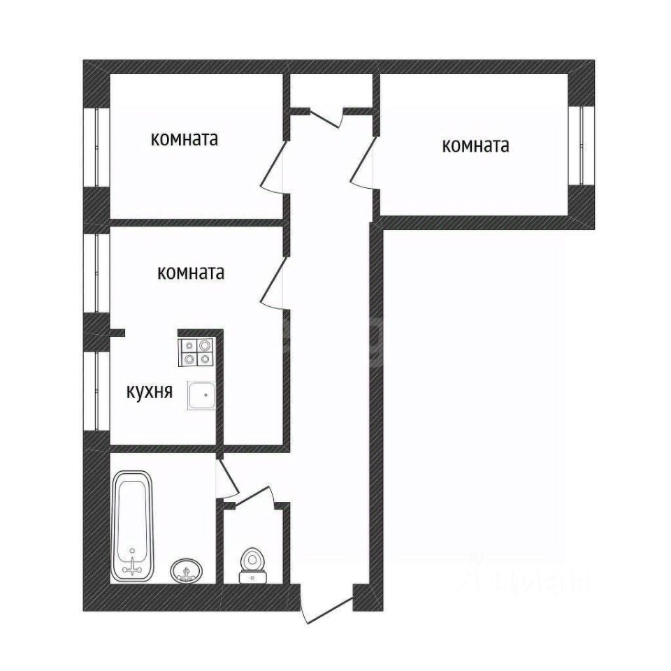 Комнаты: 12.1 + 15.3 + 12.3 кв.м, все окна заменены на стеклопакеты. Кухня 6 кв.м. Санузел раздельный.