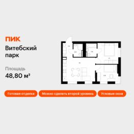 Продаётся 2-комн. квартира площадью 48,8 кв.м на 1 этаже 12 этажного дома (Корпус 6, Секция 4) проекта ПИК Витебский парк. Светлый просторный подъезд на уровне земли, функциональная планировка, большие окна, c отделкой.