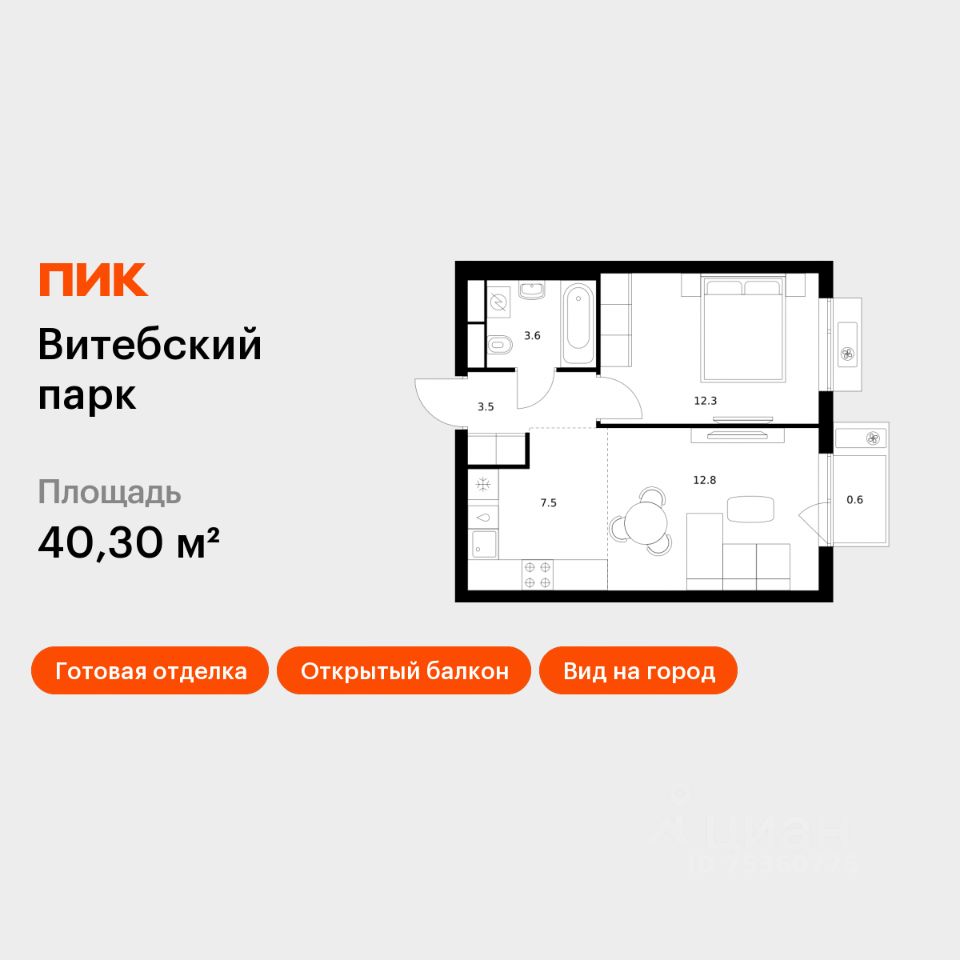 Продаётся 1-комн. квартира площадью 40,3 кв.м на 10 этаже 12 этажного дома (Корпус 6, Секция 3) проекта ПИК Витебский парк. Светлый просторный подъезд на уровне земли, функциональная планировка, большие окна, c отделкой.