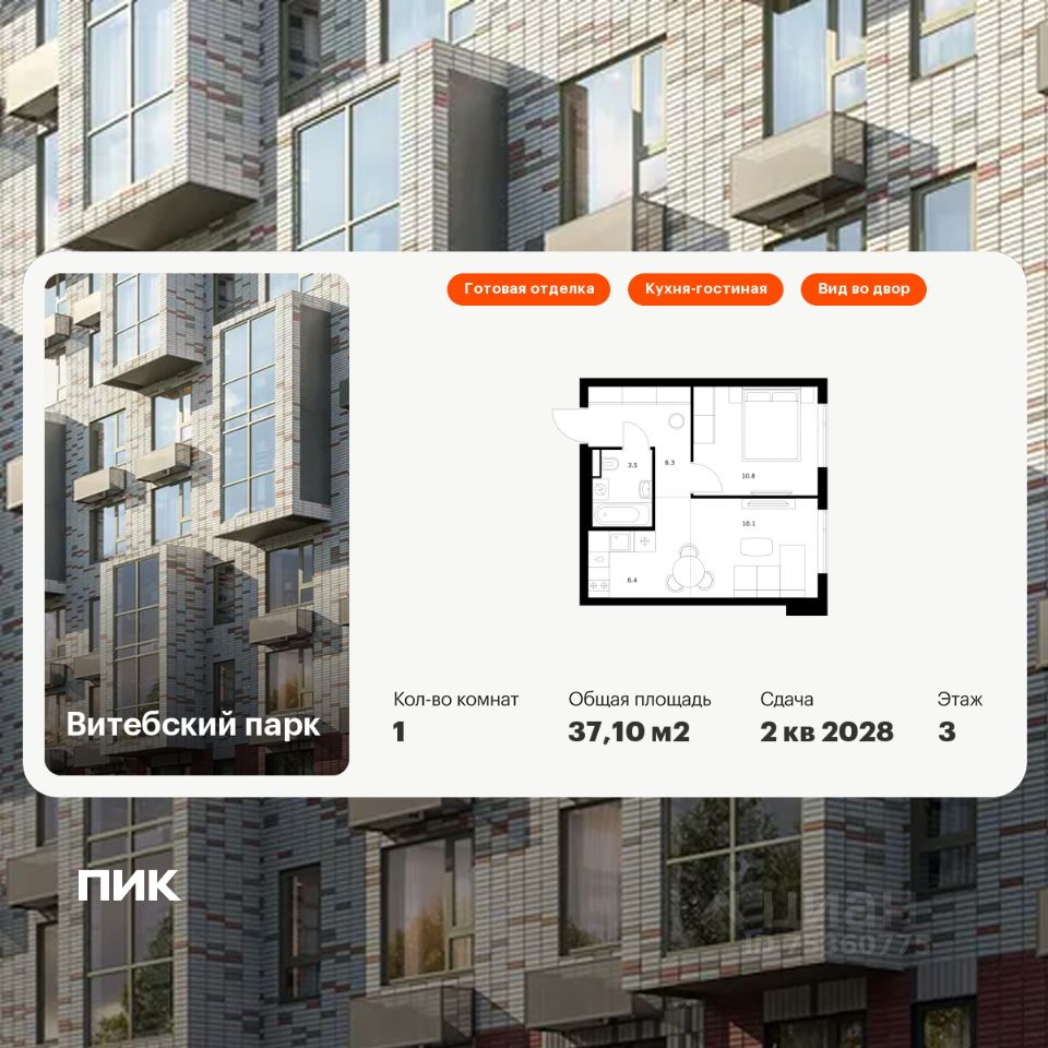 Продаётся 1-комн. квартира площадью 37,1 кв.м на 3 этаже 12 этажного дома (Корпус 6, Секция 3) проекта ПИК Витебский парк. Светлый просторный подъезд на уровне земли, функциональная планировка, большие окна, c отделкой.