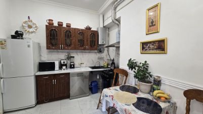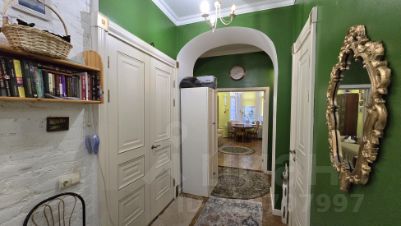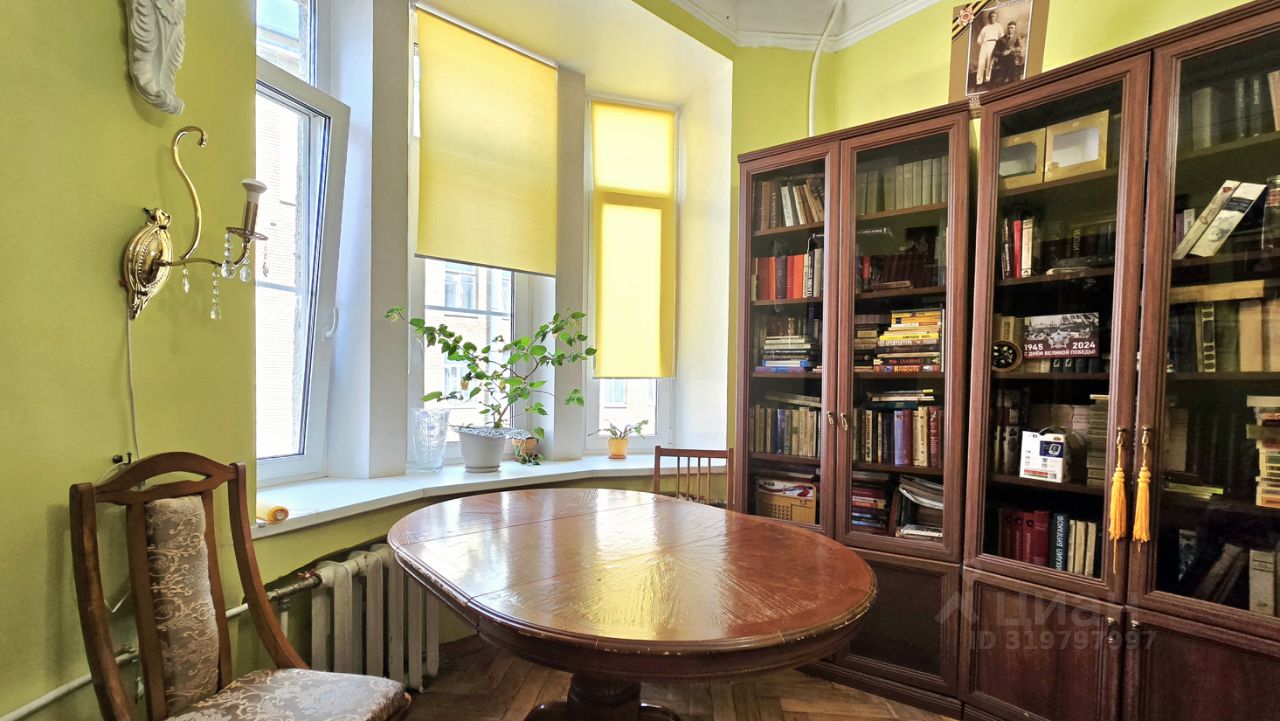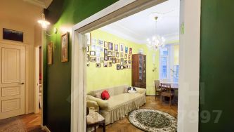 В процессе ремонта квартиры собственник постарался максимально сохранить исторический интерьер и отделку. Окна квартиры выходят на улицу, кухня во двор; высокие потолки и окна; в гостиной эркер; на потолке лепнина.