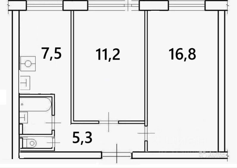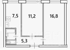 Кухня 7,5м2, комнаты 11,2м2 и 16,8м2