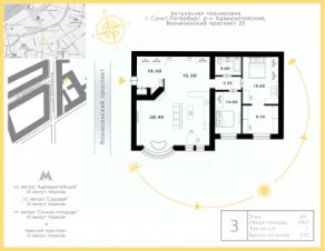 Детально продуманная планировка: 2 спальни и просторная кухня, совмещенная с гостиной. Окна квартиры смотрят в светлый тихий двор. Один совмещенный санузел. При желании можно организовать 2-ой санузел.