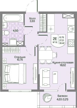 Продается 1-комнатная квартира в Квартале "Охтинские Высоты".