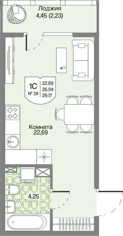 Продается квартира Студия в Квартале "Охтинские Высоты".