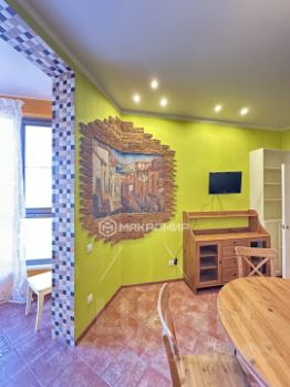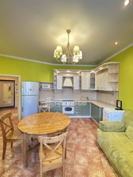 В квартире сделан ремонт. Ремонт делали для собственного проживания. Квартира мало амортизирована. Планировка включает в себя: просторную кухню-гостиную с лоджией (19,1+5,4 кв.м.), большую спальню с лоджией (20,4+4,6 кв.м.) и совмещенный санузел( 6,5 кв.м.). Кухня и спальня полностью укомплектованы мебелью и бытовой техникой. Санузел совмещенный, установлена ванна. Квартира расположена на 6-ом этаже, окна выходят в тихий благоустроенный двор.