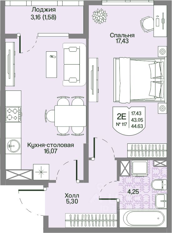 Продается 1-комнатная квартира в Квартале "Охтинские Высоты".