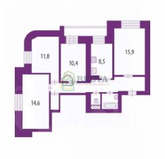 Четыре изолированные комнаты (15,9+14,6+11,8+10,4 м2). Светлая просторная кухня (8,5 м2). Раздельный санузел. Лоджия, кладовка. Удобная планировка. В квартире хороший ремонт, большинство мебели и техники остается. Окна выходят во двор, тишина и свежий воздух. Благоустроенный двор с детской площадкой, школой и детским садом.