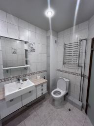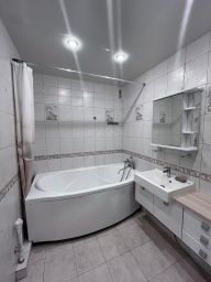 В квартире остается кухонный гарнитур с новой встроенной посудомоечной машиной. Заменен стояк, сделана новая разводка труб. В квартире есть собственный котел для регулировки температуры.
