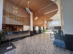 Для важных встреч шикарное лобби со стойкой ресепции, зоной ожидания с камином и массажными креслами