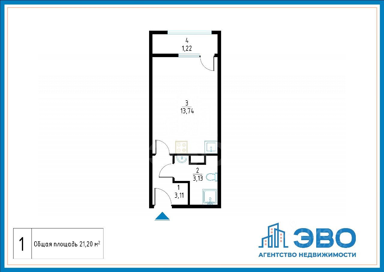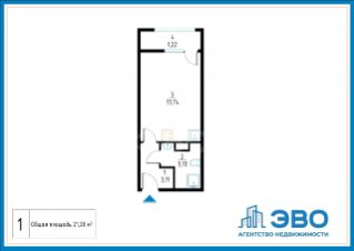 Площадь вместе с лоджией 21,20 кв.м.