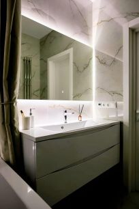 Все что вы видите на фото остается в квартире. В квартире сделан дизайнерский ремонт! Использованы европейские материалы, итальянский свет.