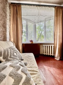 1. В квартире 3 комнаты: в двух живет молодая женщина, а третья с эркерным окном - в продаже! Собственник не пользуется квартирой.