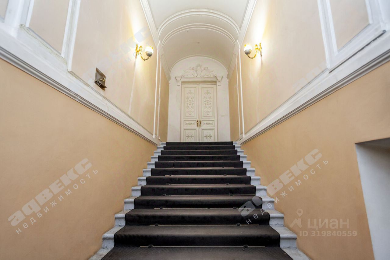 Своя парадная с широкой лестницей. Вход с линии. Высокий бельэтаж, до окон примерно 4 метра. На окнах кованные решетки.