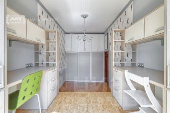В детской комнате сделан дизайнерский ремонт, с окном в пол, уложен пробковый пол, рабочая зона сделана на 2 уровне.